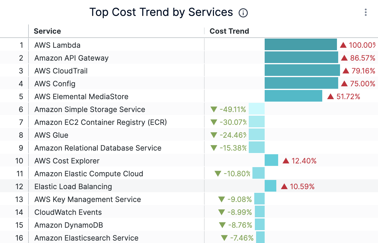 Top Cost Trend by ServicesThe top AWS services by cost increase or decrease