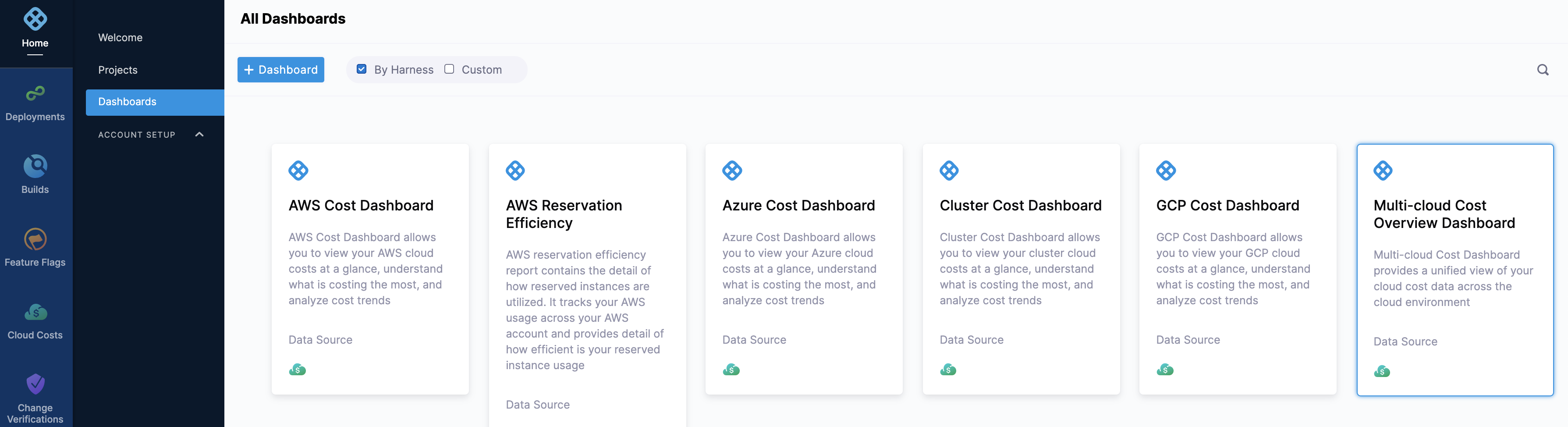 2. Select By Harness and click Multi-cloud Cost Overview Dashboard.
