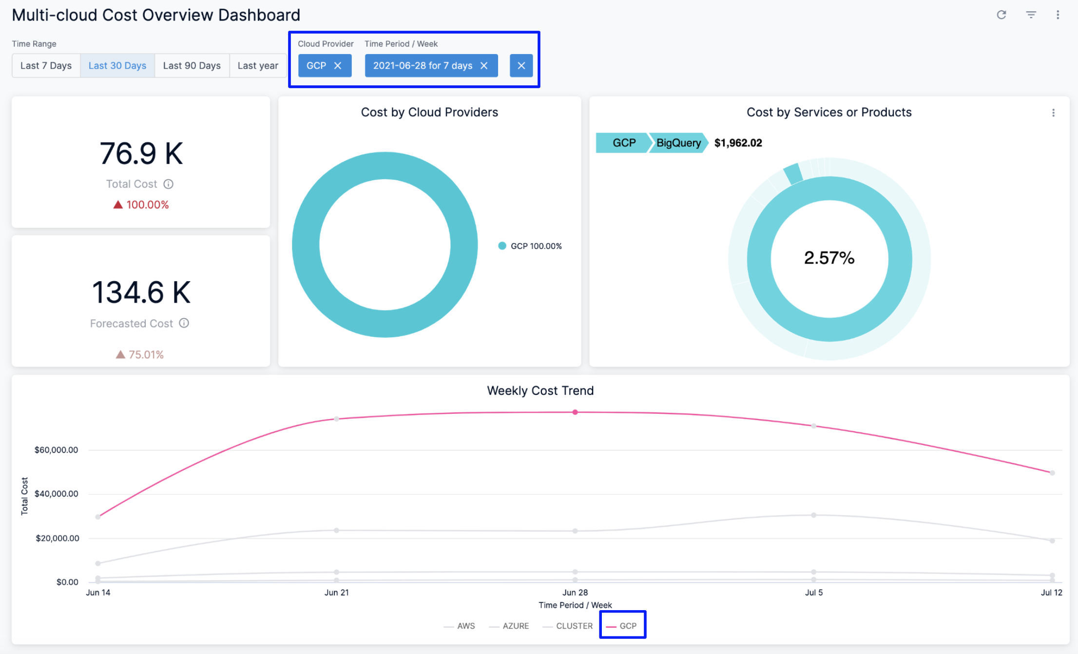 Perform the following steps to view the Multi-cloud Cost Overview Dashboard: