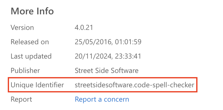 You can find the extension ID in the “More info” section of the official extension documentation.