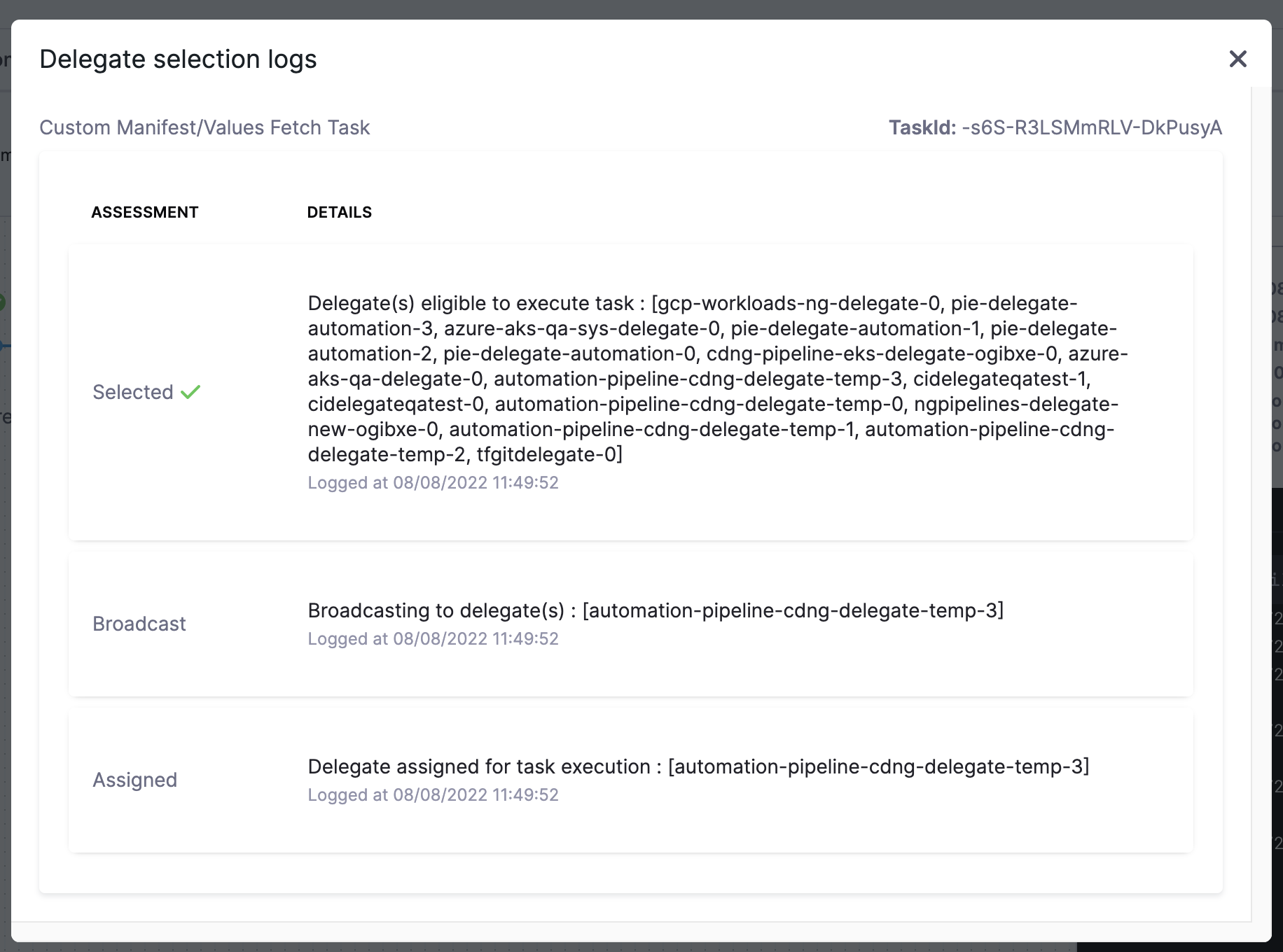 Click on Execution Summary, and then click on Custom Manifest Values Fetch Task in the console to view the selected Delegate.