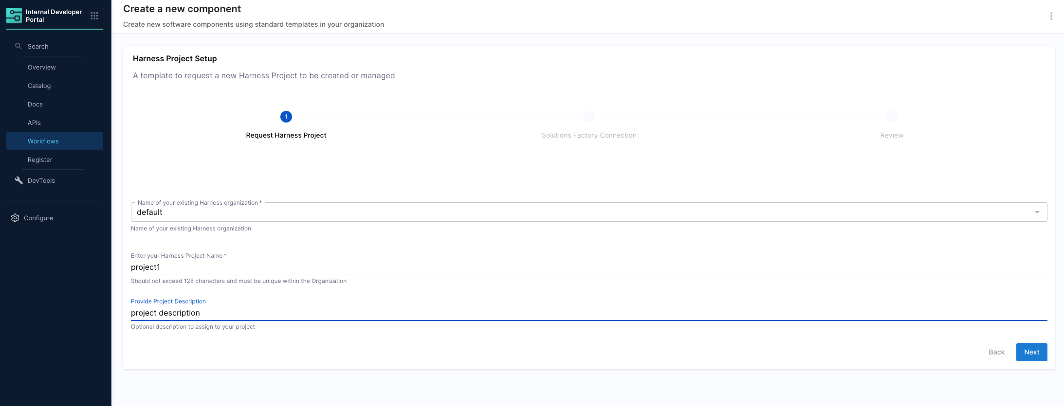 A template to request a new Harness Project to be created or managed Resources created: