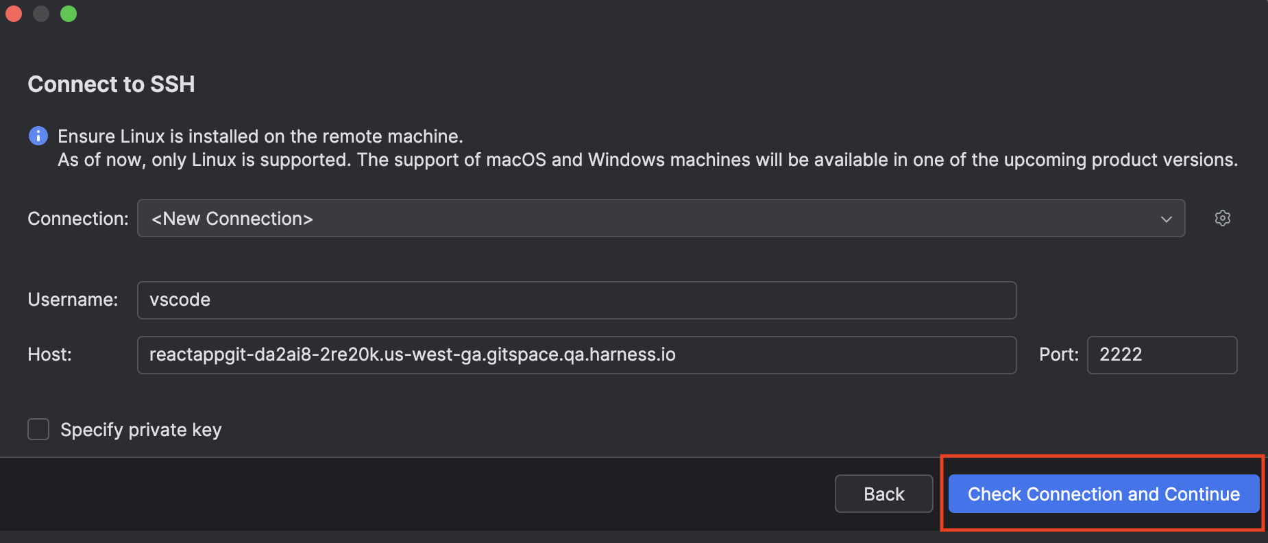 With IntelliJ IDEA support, Harness CDE enables seamless and efficient remote development in your Gitspaces with your IDE. This integration leverages JetBrains Gateway to establish a direct remote connection with IntelliJ IDEA, eliminating the need for any prior setup.