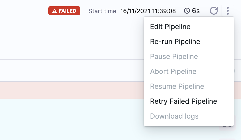 2. Select More Options (⋮), and then select Retry Failed Pipeline.