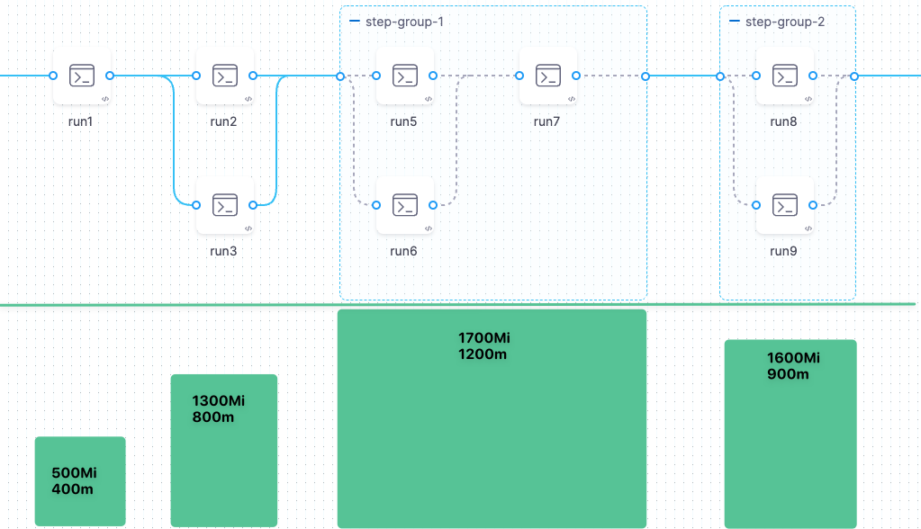 Consider resource consumption when running steps in parallel. Pipelines reserve memory and CPU resources in advance for each stage, and the amount of reserved memory and CPU is determined by the highest utilization at any point in the stage.