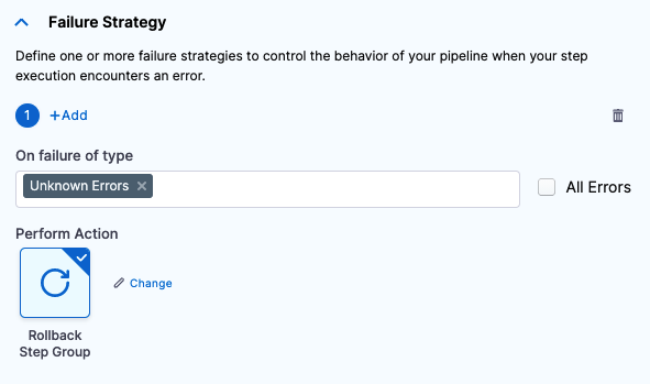 If you configure stage-level Conditional Execution and Failure Strategy settings, then those settings apply to any step groups or steps that don't have their own Conditional Execution and Failure Strategy settings.