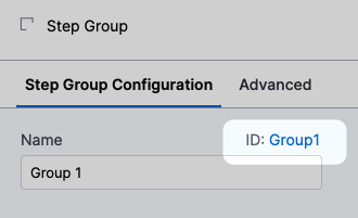 To reference a step, step setting, variable, output, or other data from a step in a step group, you must include the step group ID in the expression, such as: