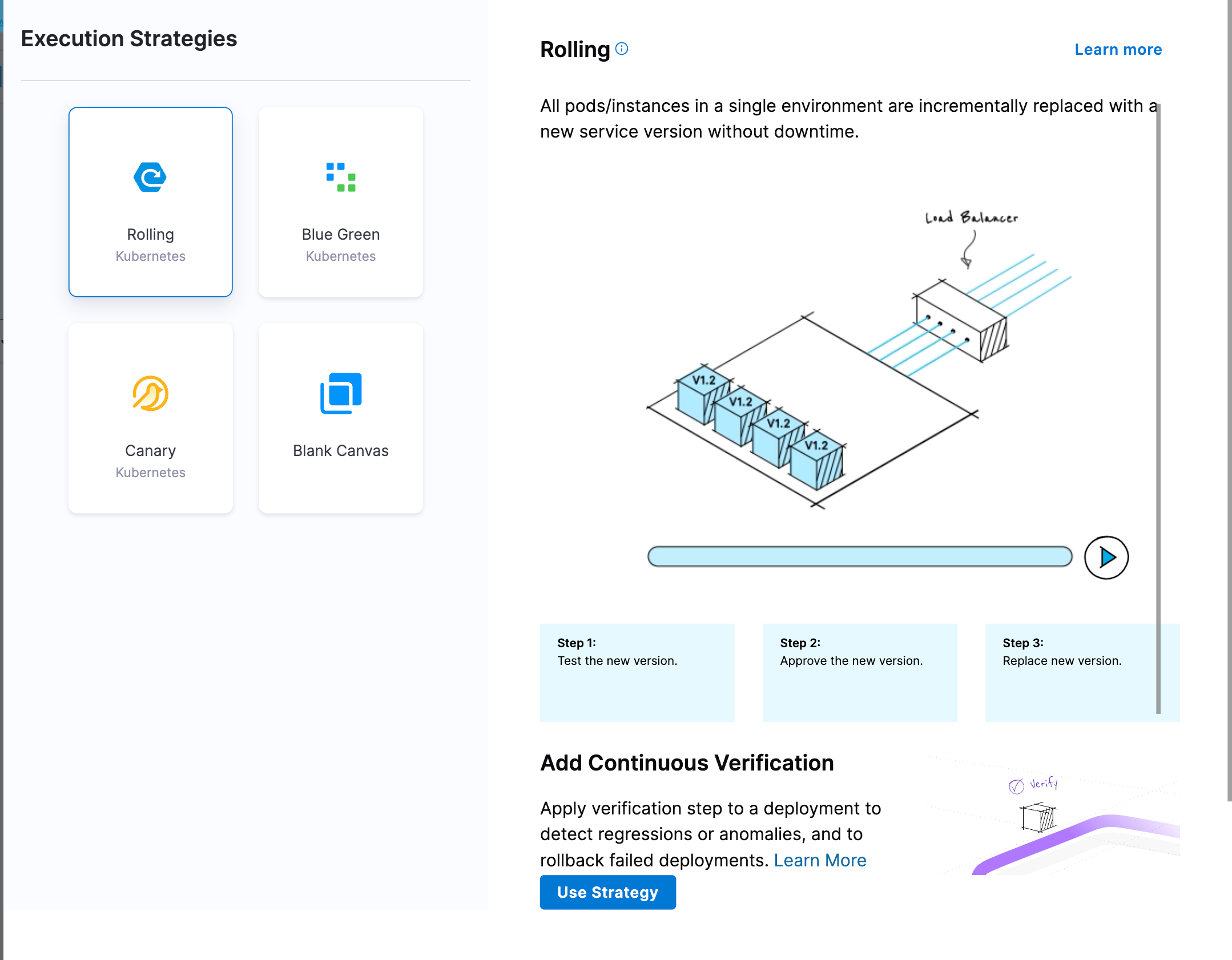 This example uses the Deploy stage. The Deploy stage type is a CD stage that enables you to deploy any service to your target environment.