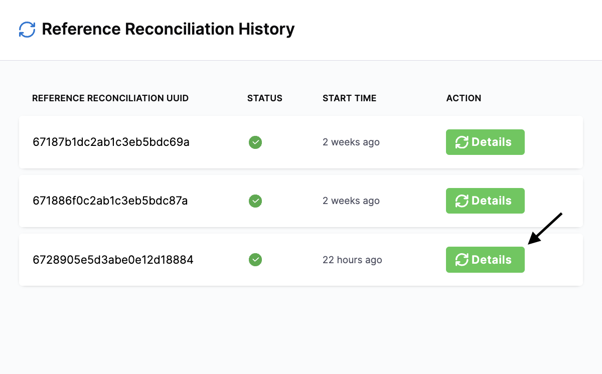 Here, you can view the Details, Status, Start Time of each reconciliation.