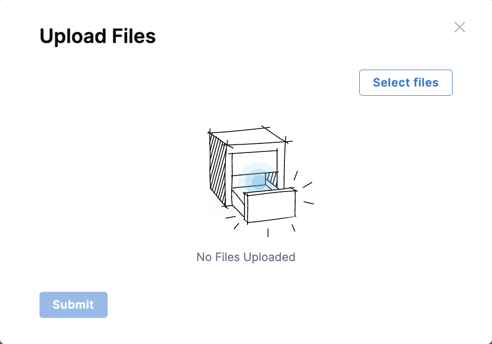 Once files are selected, click Upload to confirm the selection. Uploaded files will then be displayed, and Submit can be clicked to complete the process.