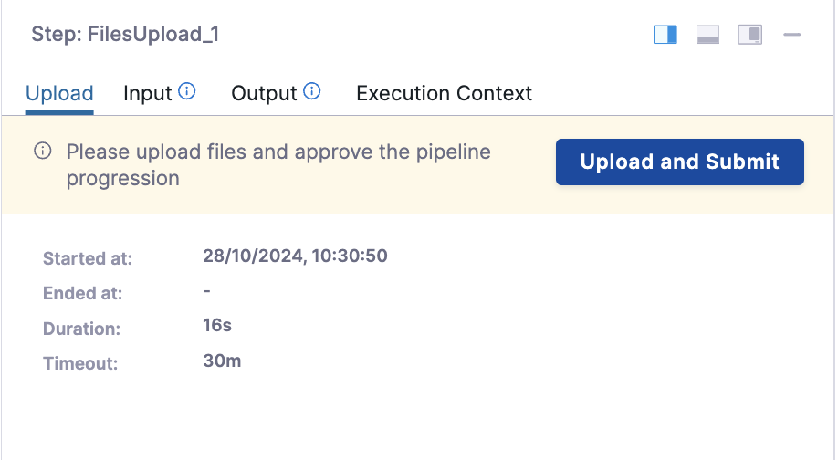 After adding the step to the stage and executing the pipeline, an Upload and Submit button will appear.