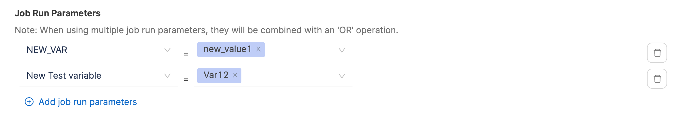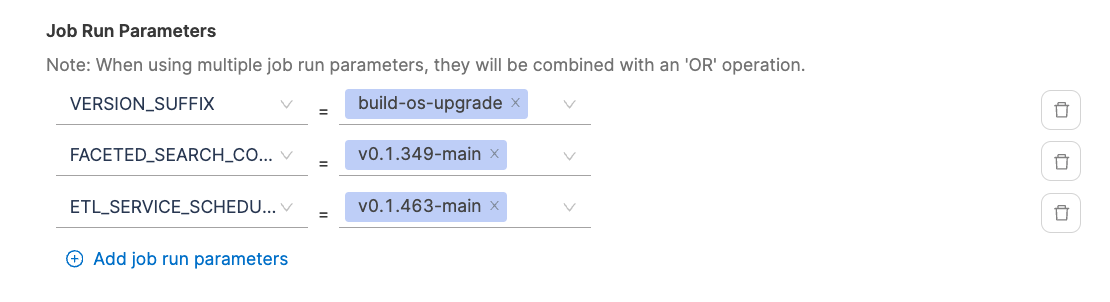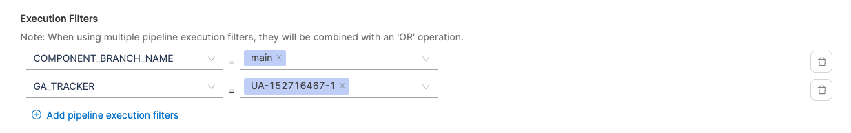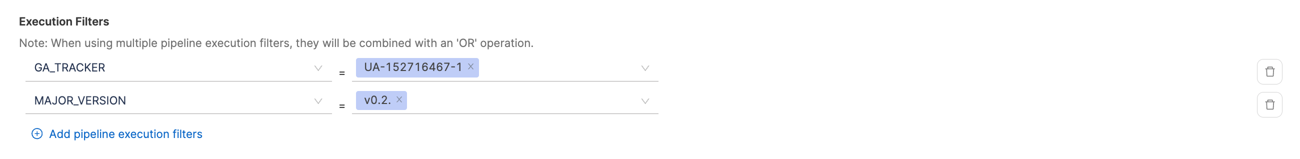 • Example: Include executions where JAVA_VERSION = 11 OR Branch = main.