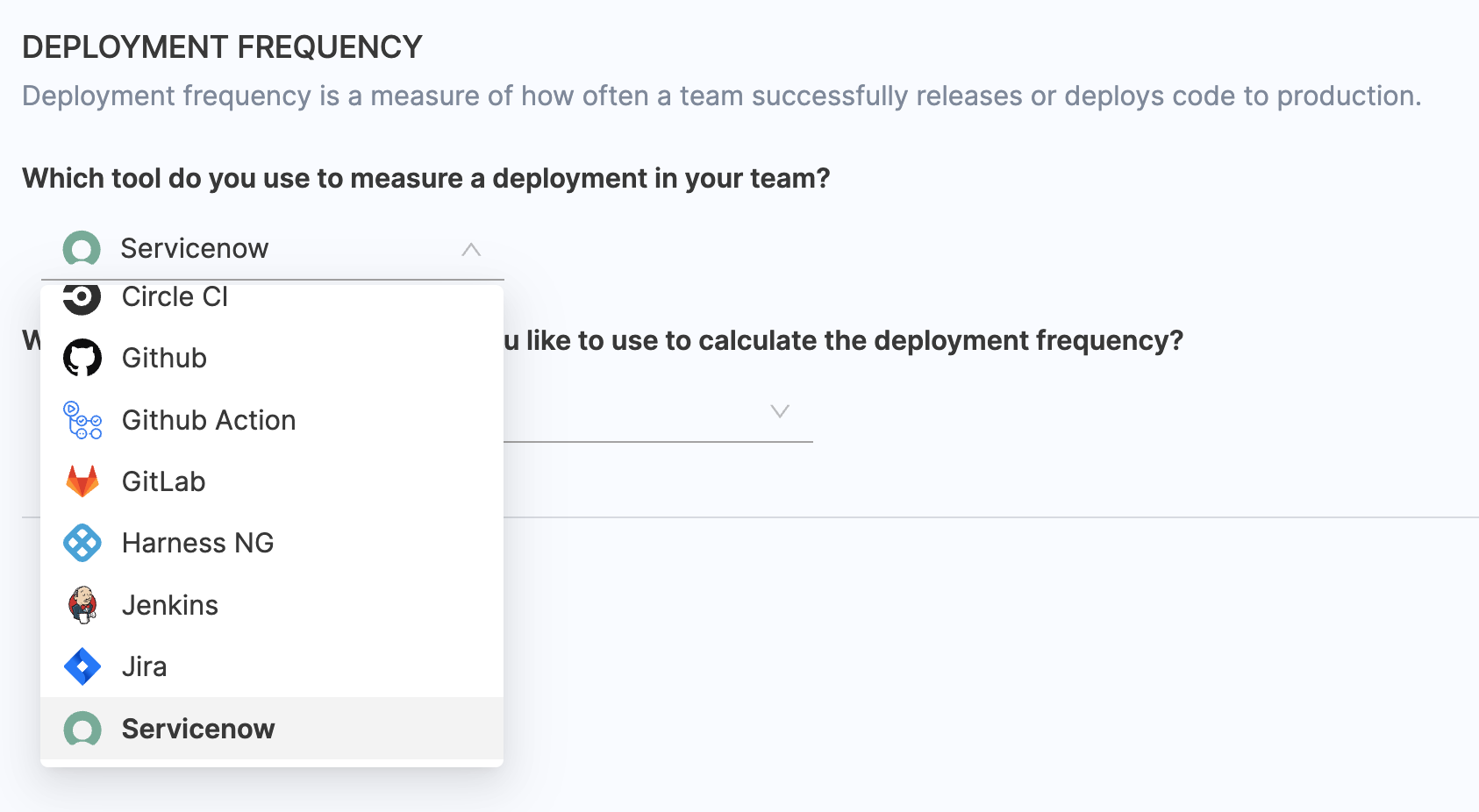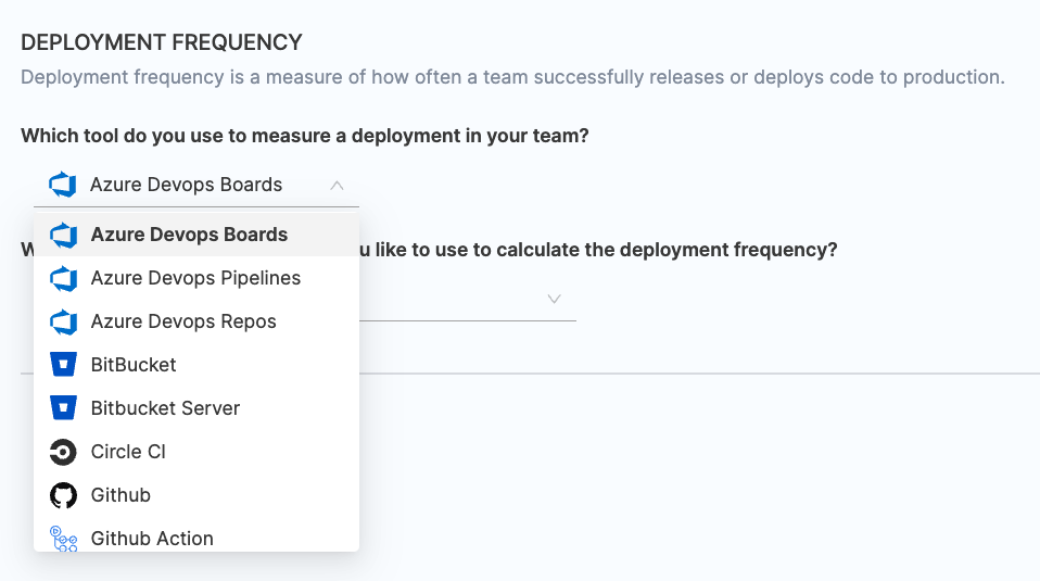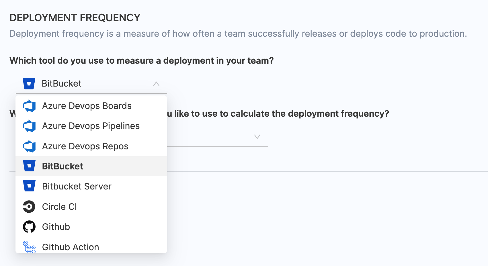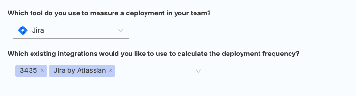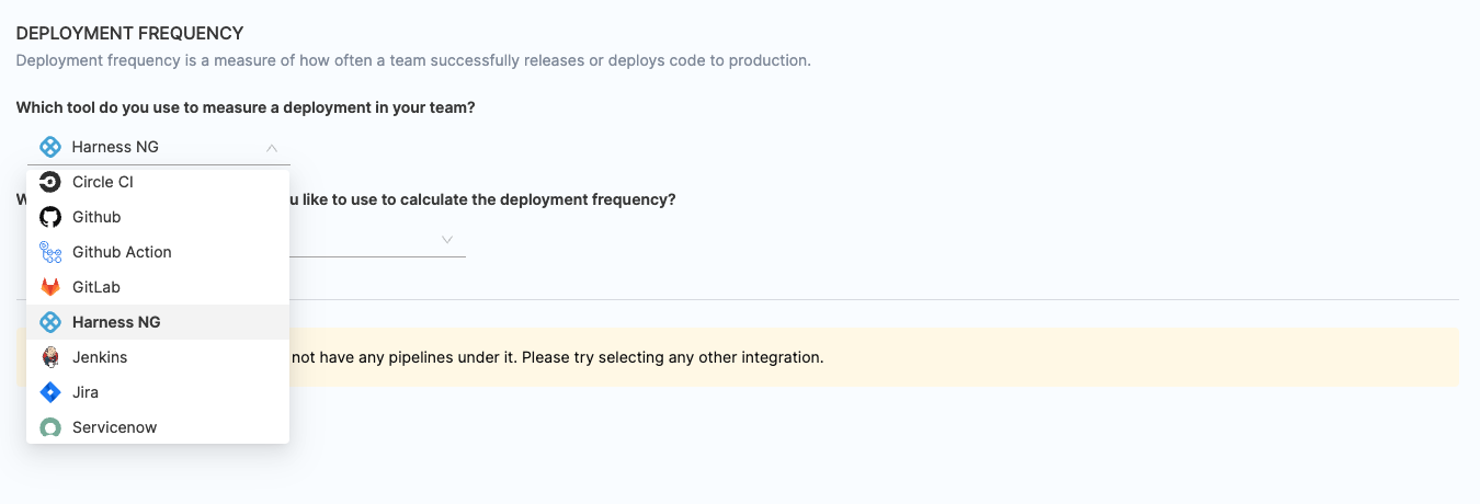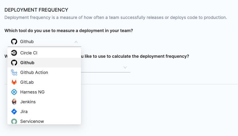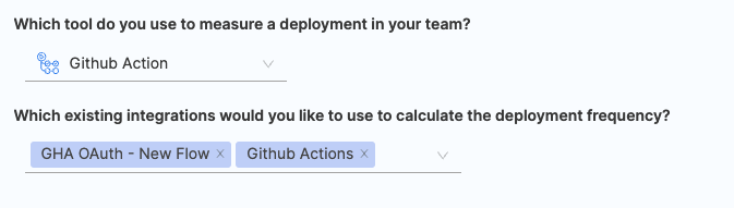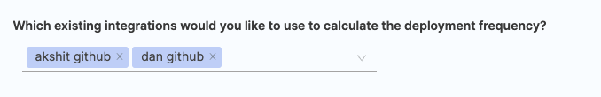 • Select any existing integrations you wish to use for calculating deployment frequency.