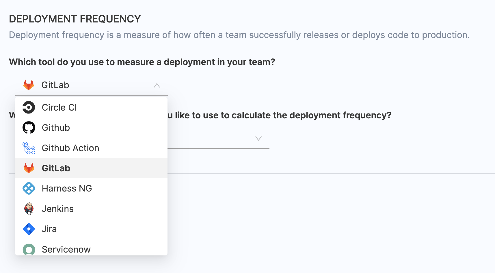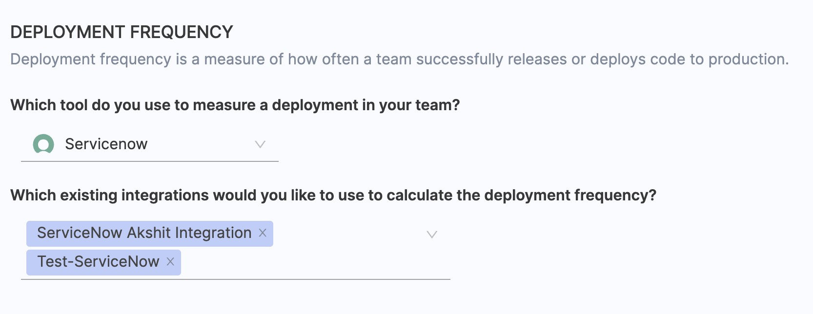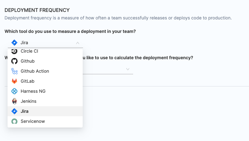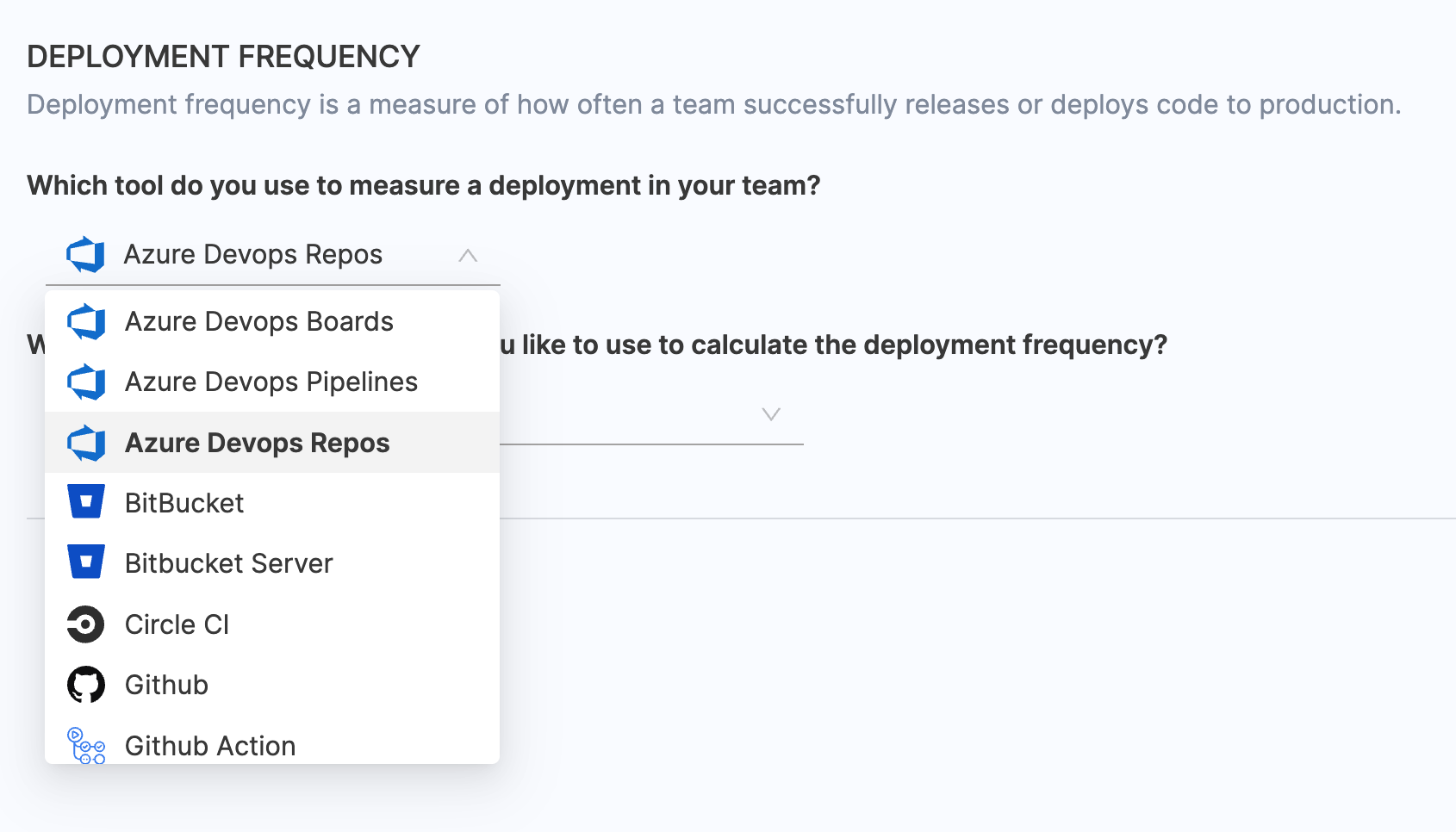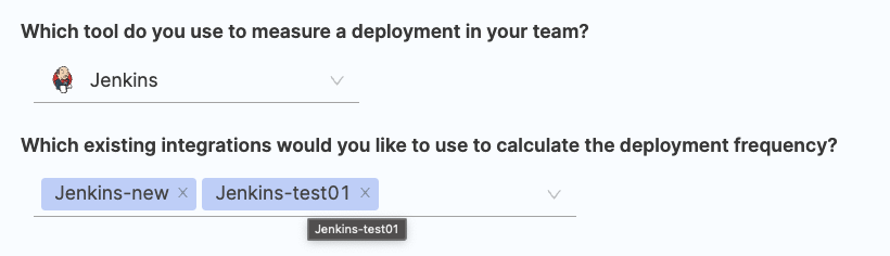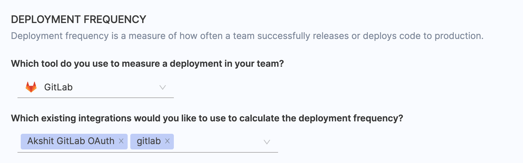 • Select any existing integrations you wish to use for calculating deployment frequency.
