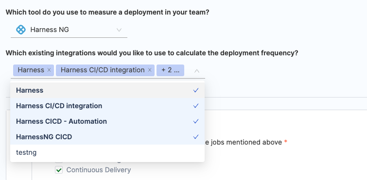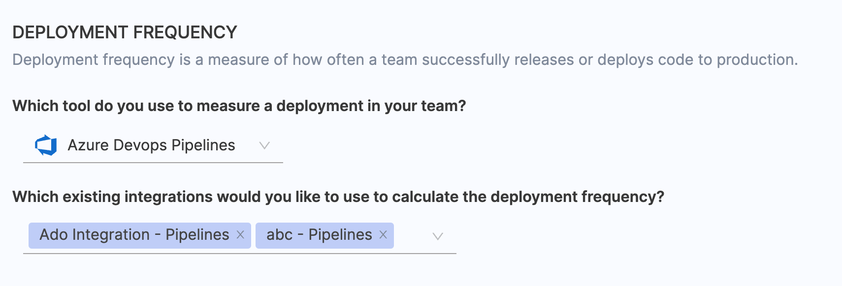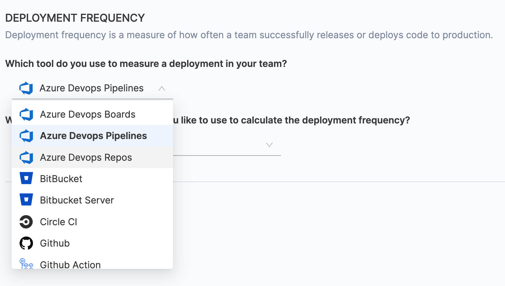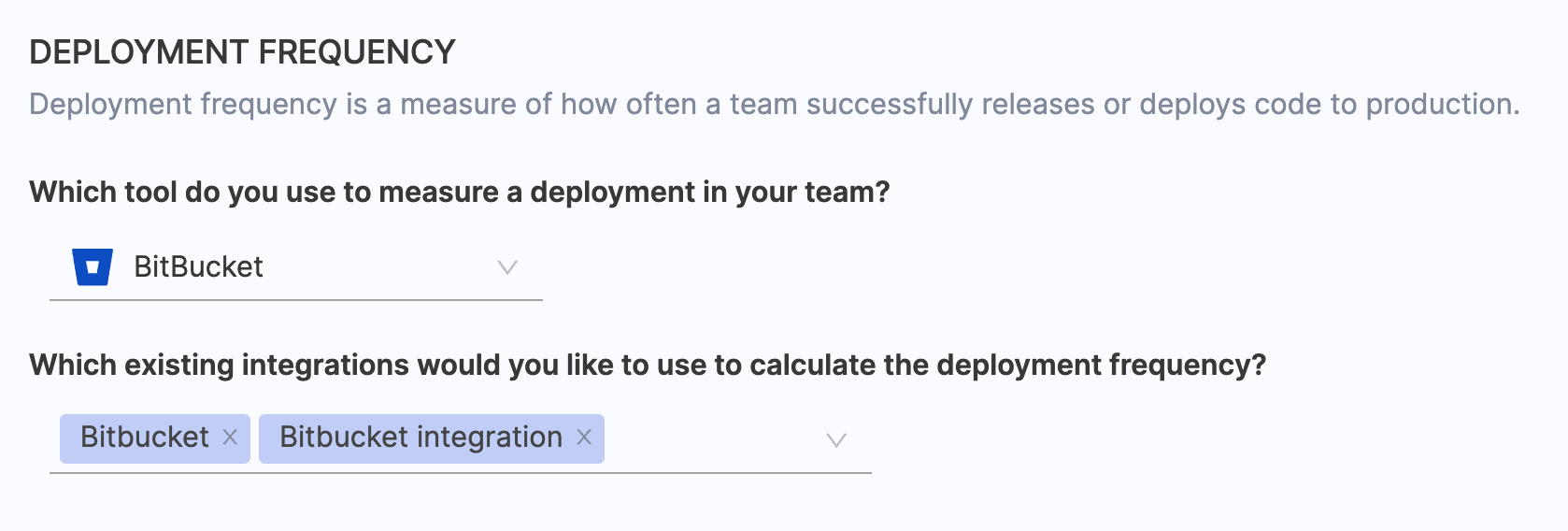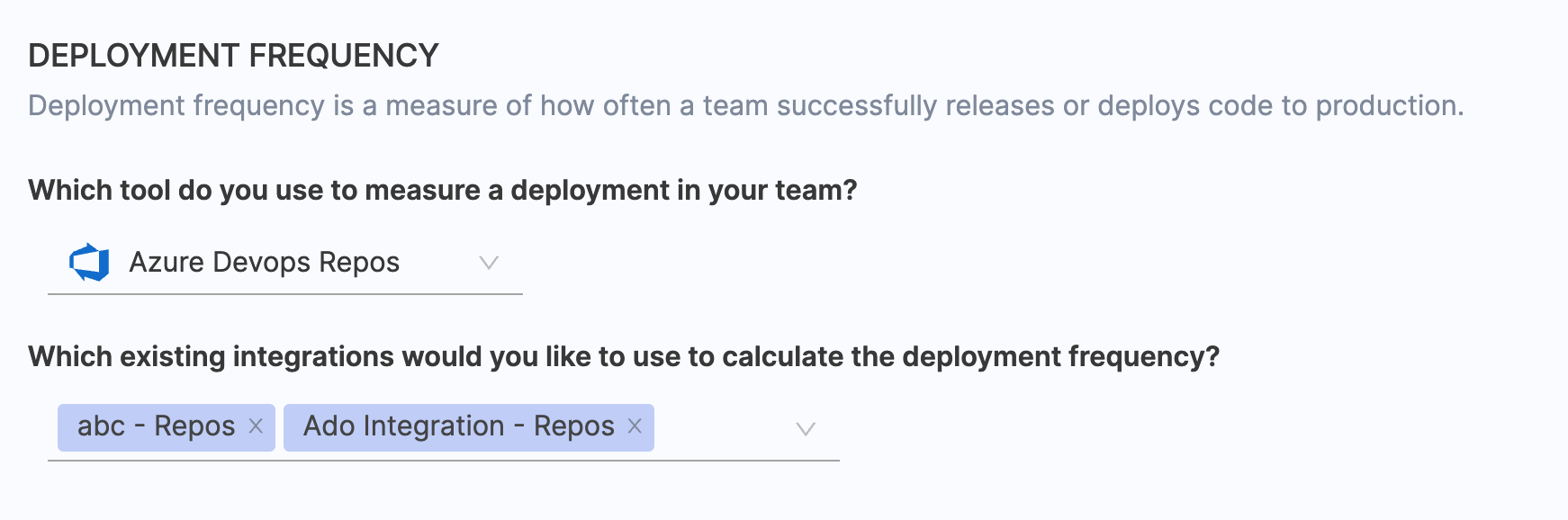 • Select any existing integrations you wish to use for calculating deployment frequency.
