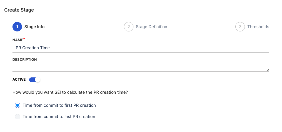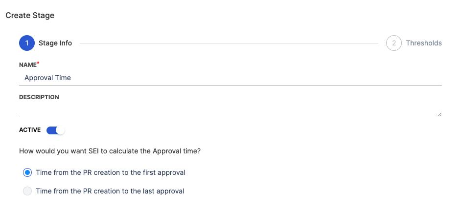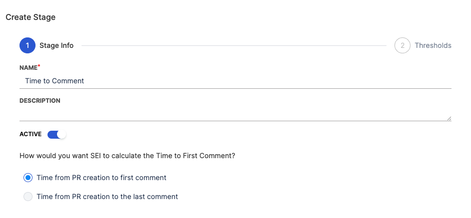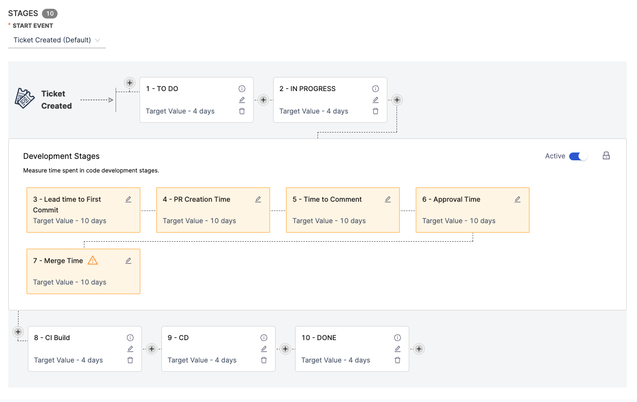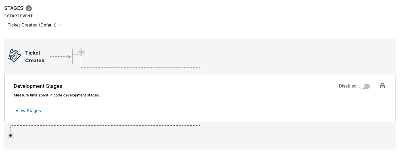 • Default development stages (tracked via your SCM) are by default configured. You can enable or disable these as needed.