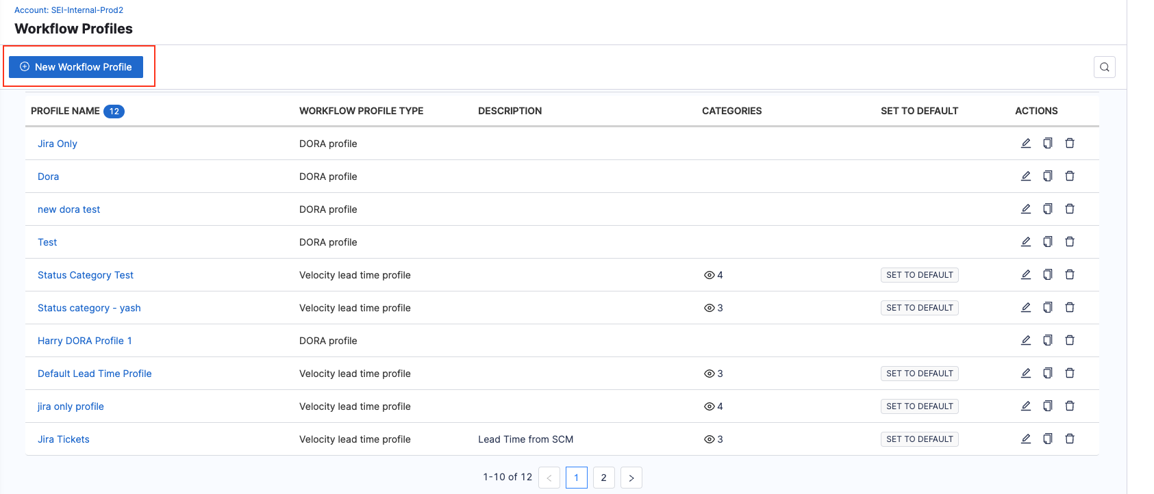 • To create a profile, select +New Workflow Profile. To edit a profile, select the profile's name in the profiles list.