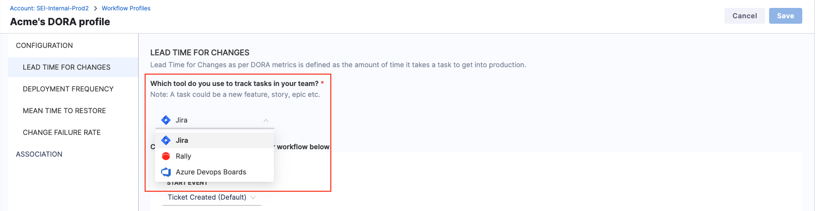 This section covers how to set up the Lead Time for Changes metric definition using only an issue management tool like Jira.