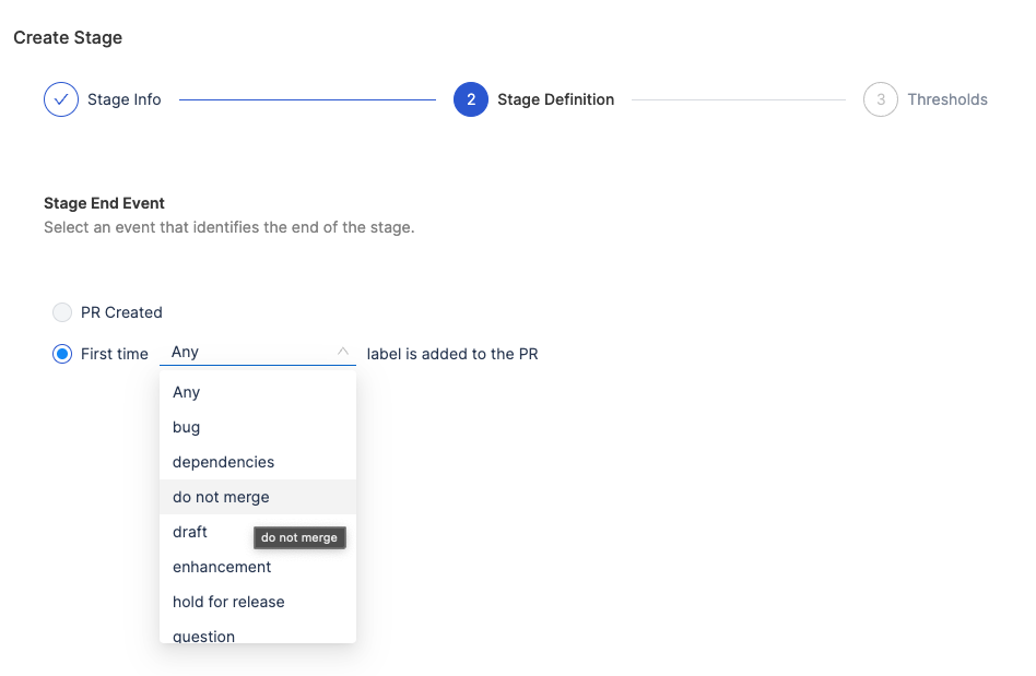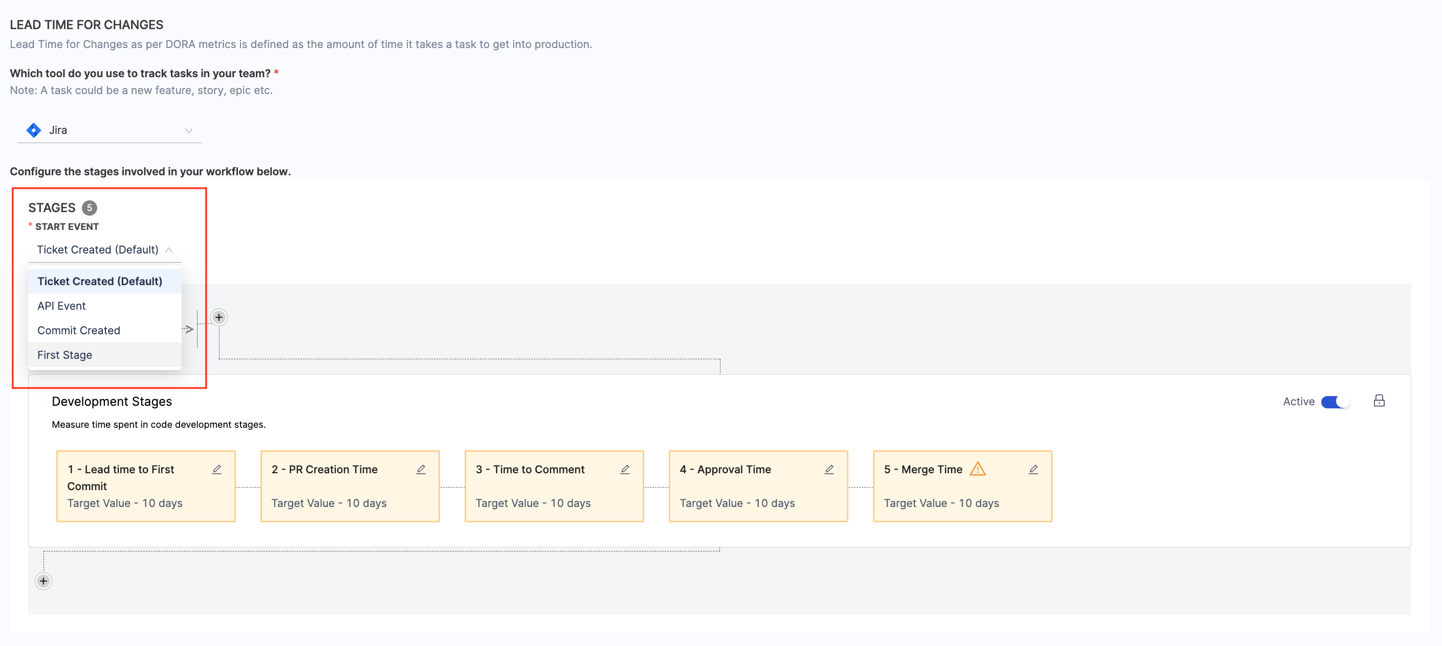Choose the appropriate start event to define when Lead Time tracking begins in your workflow.