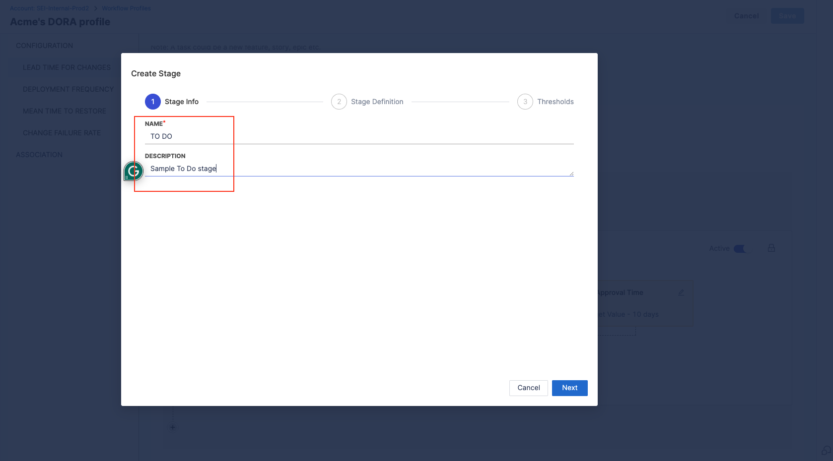 Lead Time for Changes measures how long it takes for a task to move from development to production. This involves defining stages in your workflow that reflect your software delivery process.