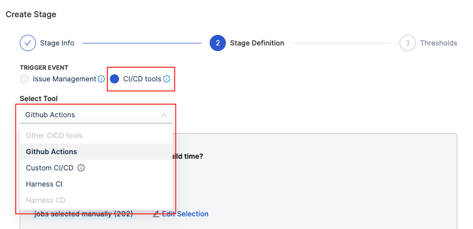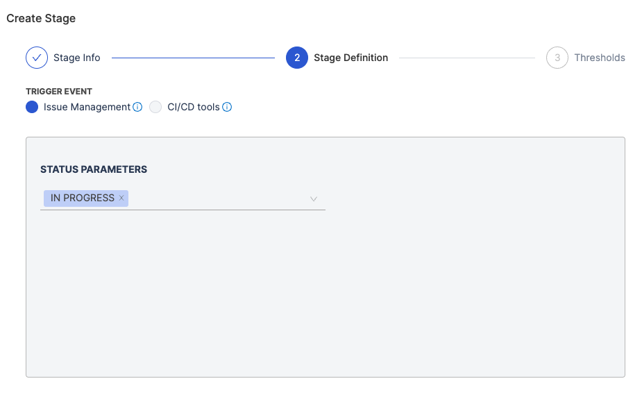 • Define the Stage Trigger Event (e.g., Issue Management) and map the stage to statuses in your issue management system.