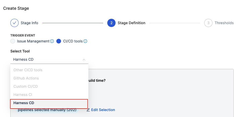 • Choose Harness CD as the tool that you use to measure a deployment in your team.