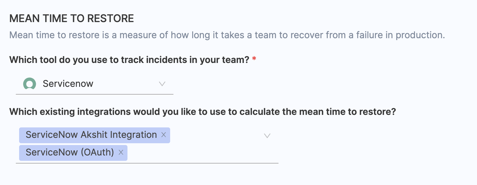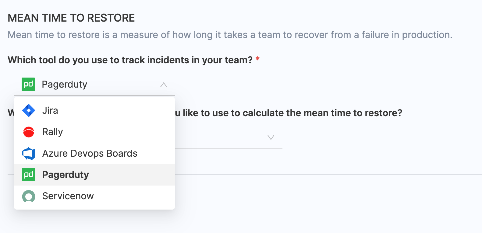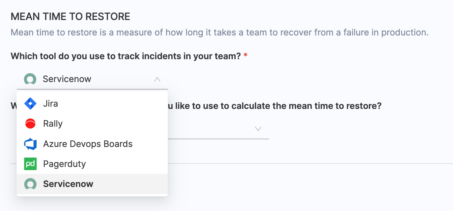 • Choose ServiceNow as the tool that you use to measure mean time to restore in your team.