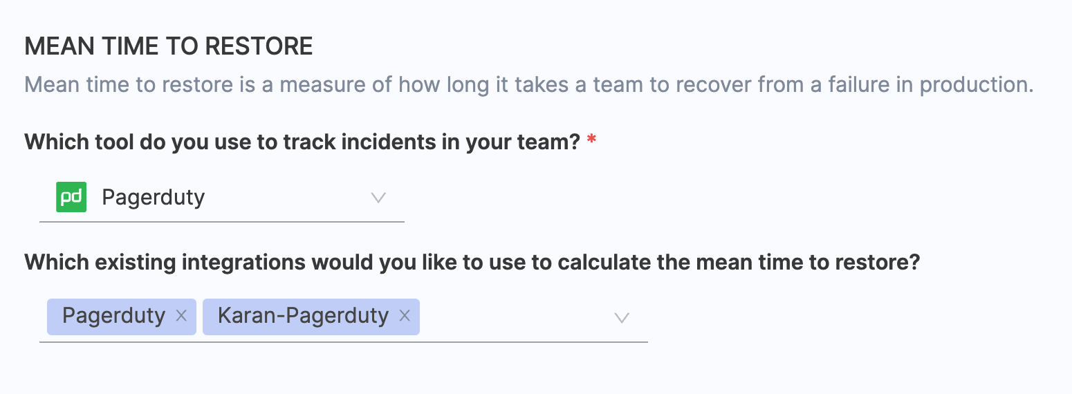 Here's an example configuration of how you could configure Mean Time to Restore across various tools.